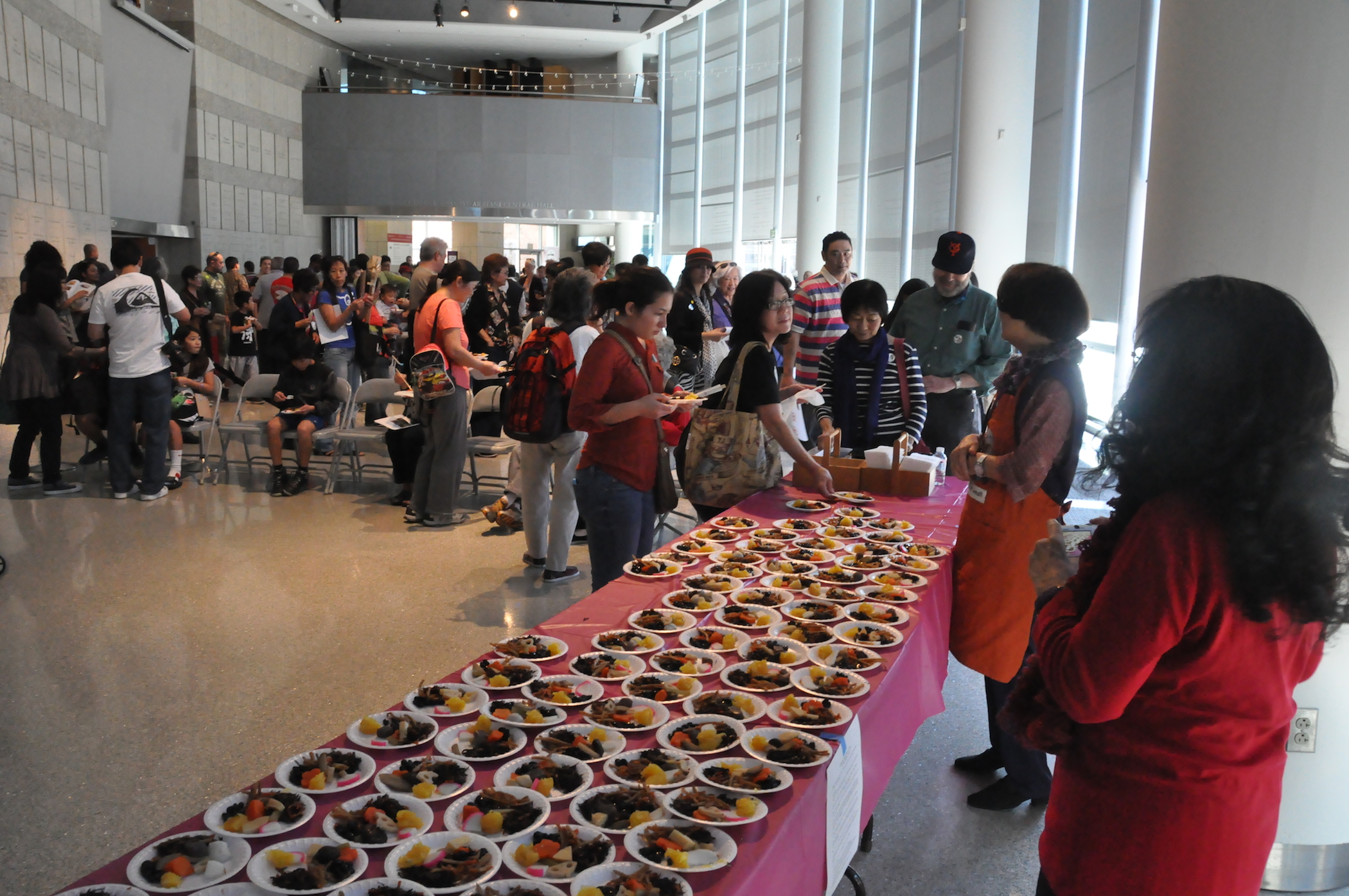 Forming a line to sample some osechi-ryori, or traditional Japanese New Year foods!